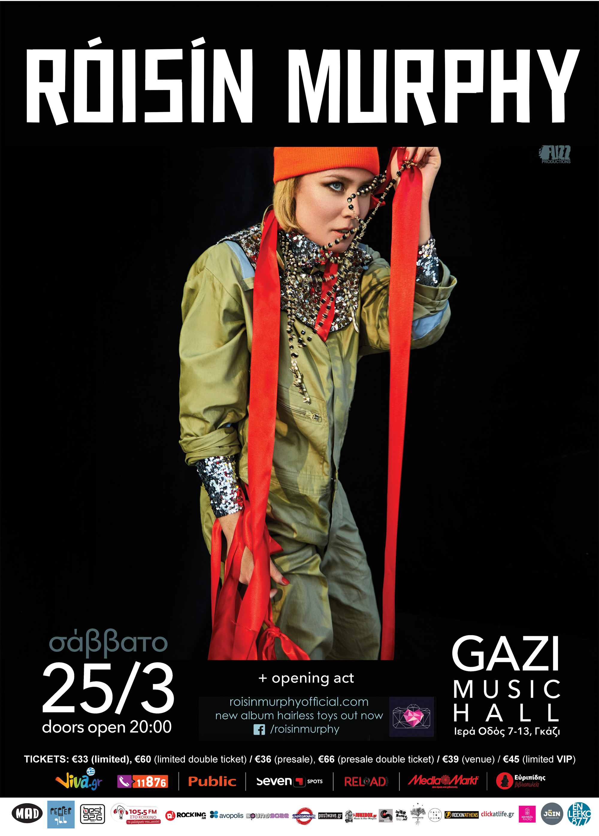 H Róisín Murphy, ένα από τα κορυφαία ονόματα της electronic / dance / art pop σκηνής και αδιαμφισβήτητo fashion & style icon, επιστρέφει στην Αθήνα μετά από πολλά χρόνια! Η Ιρλανδή καλλιτέχνις, που έγινε γνωστή ως το ½ των Moloko, θα παρουσιάσει ένα εντυπωσιακό show, μαζί με τη μπάντα της, το Σάββατο 25 Μαρτίου στο Gazi Music Hall.