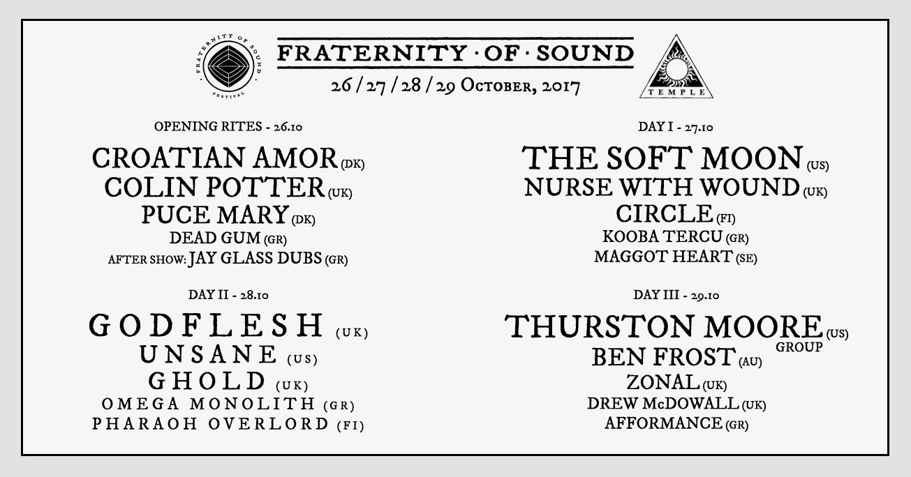 Το Fraternity of Sound Festival, είναι η μετενσάρκωση αυτού που κάνουμε από την αρχή και τώρα μετουσιώνεται και πραγματώνεται σε μια ανάσα, ενώ μανιώδης αγάπη και επιμονή μεταμορφώνονται σε ήχο.