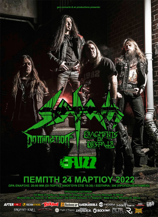 Με καινούργια αλλά περισσότερο από ποτέ πολύ γνώριμα πλέον νέα μέλη στην μπάντα τους σαν να γύρισαν από το παρελθόν θα επισκεφτούν για 2 εμφανίσεις την Ελλάδα, για δύο Special Anniversary Old School Shows μόνο για το ελληνικό και όπως ανέφερε ο Tom Angelripper, για ένα από τα πιο αγαπημένα του κοινά και χώρα…την Ελλάδα.