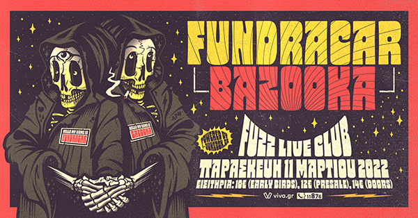 FUNDRACAR x BAZOOKA Παρασκευή 11 Μαρτίου 2022, Fuzz Live Music Club (Πειραιώς 209 & Πατριάρχου Ιωακείμ 1, Ταύρος) Εισιτήρια: 10€ (περιορισμένα early birds), 12€ (προπώληση), 14€ (ταμείο) Προπώληση από το δίκτυο Viva: • Online στο bit.ly/3KNTmbE • Τηλεφωνικά στο 11876 • Φυσικά σημεία: Καταστήματα Wind, Public, Media Markt, Ευριπίδης, Yoleni’s, Viva Spot Τεχνόπολης FB event: […]