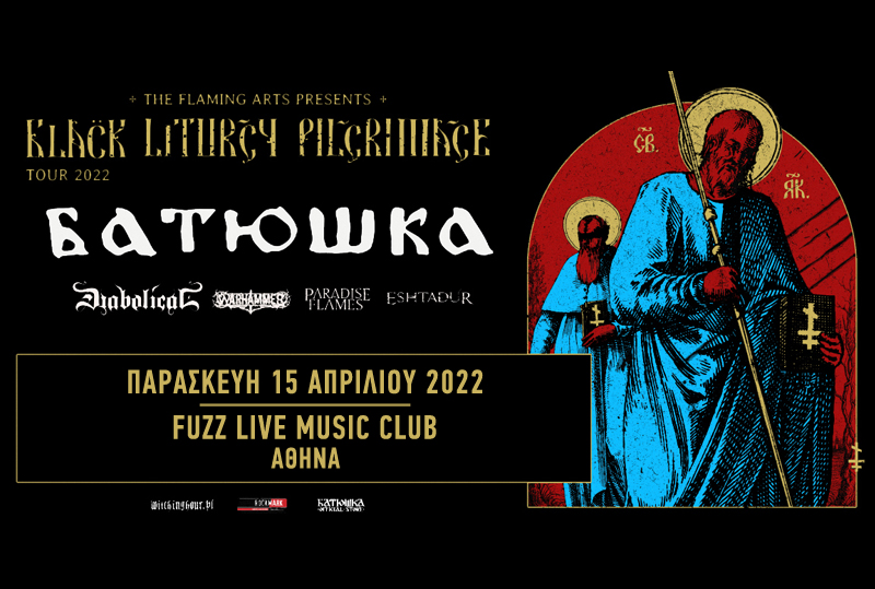 Black Liturgy Pilgrimage European Tour 2022 BATUSHKA (Poland) +DIABOLICAL (Sweden) +WARHAMMER (Greece) +PARADISE IN FLAMES (Brazil) +ESHTADUR (Colombia) Παρασκευή 15 Απριλίου 2022 - Αθήνα - Fuzz Live Music Club Αν και νεοσύστατο σχήμα οι Πολωνοί BATUSHKA (τα περισσότερα μέλη τους βέβαια ήταν και παραμένουν μέλη και άλλων συγκροτημάτων) αφού έλαβαν σάρκα και οστά μόλις το […]